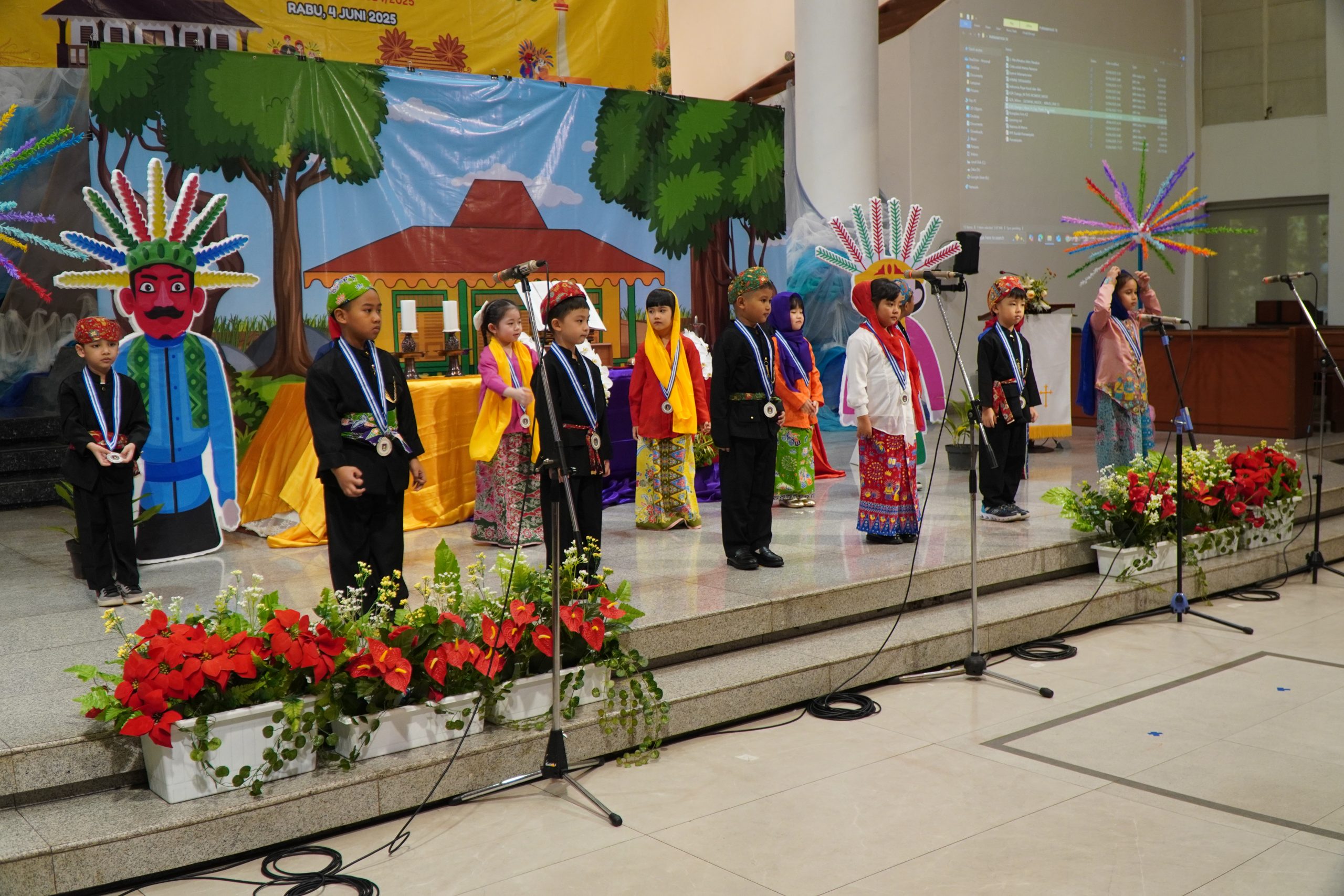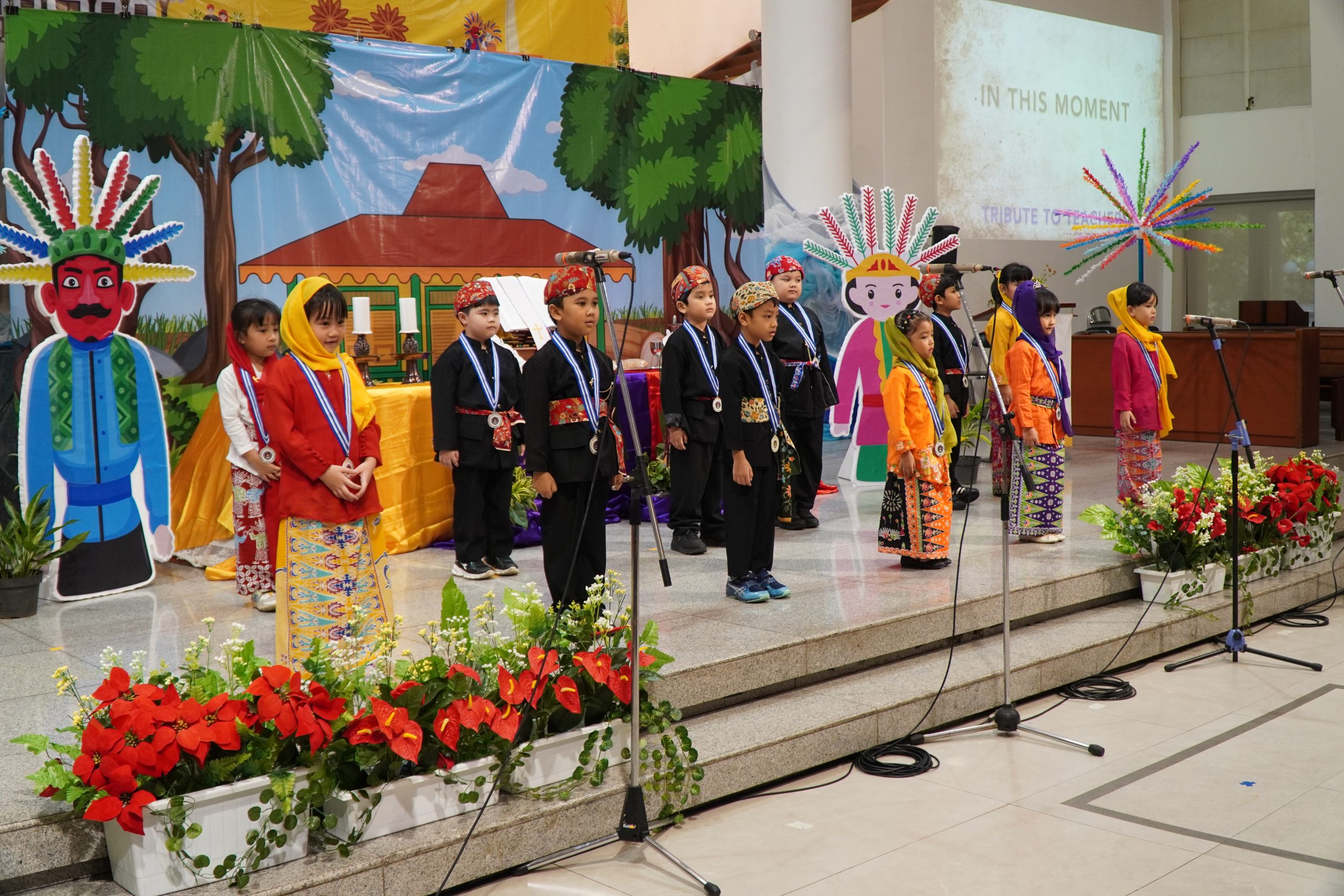 Dengan balutan dress code “Abang None Jakarta”, acara berlangsung dengan khidmat dan penuh haru. Acara dimulai dengan adanya prosesi masuk lulusan, ibadah, dan perayaan yang diisi dengan prosesi pengalungan medali dan penampilan anak-anak yang menyatakan rasa syukurnya terhadap Tuhan, guru, dan orang tua. Ternyata, bukan hanya anak-anak saja yang ingin mengungkapkan rasa syukurnya lewat penampilan, tetapi perwakilan orang tua juga memberikan penampilan terbaik mereka di hadapan anak dan tamu undangan.